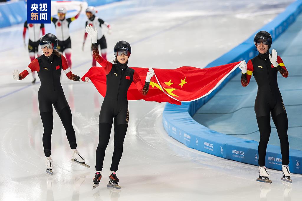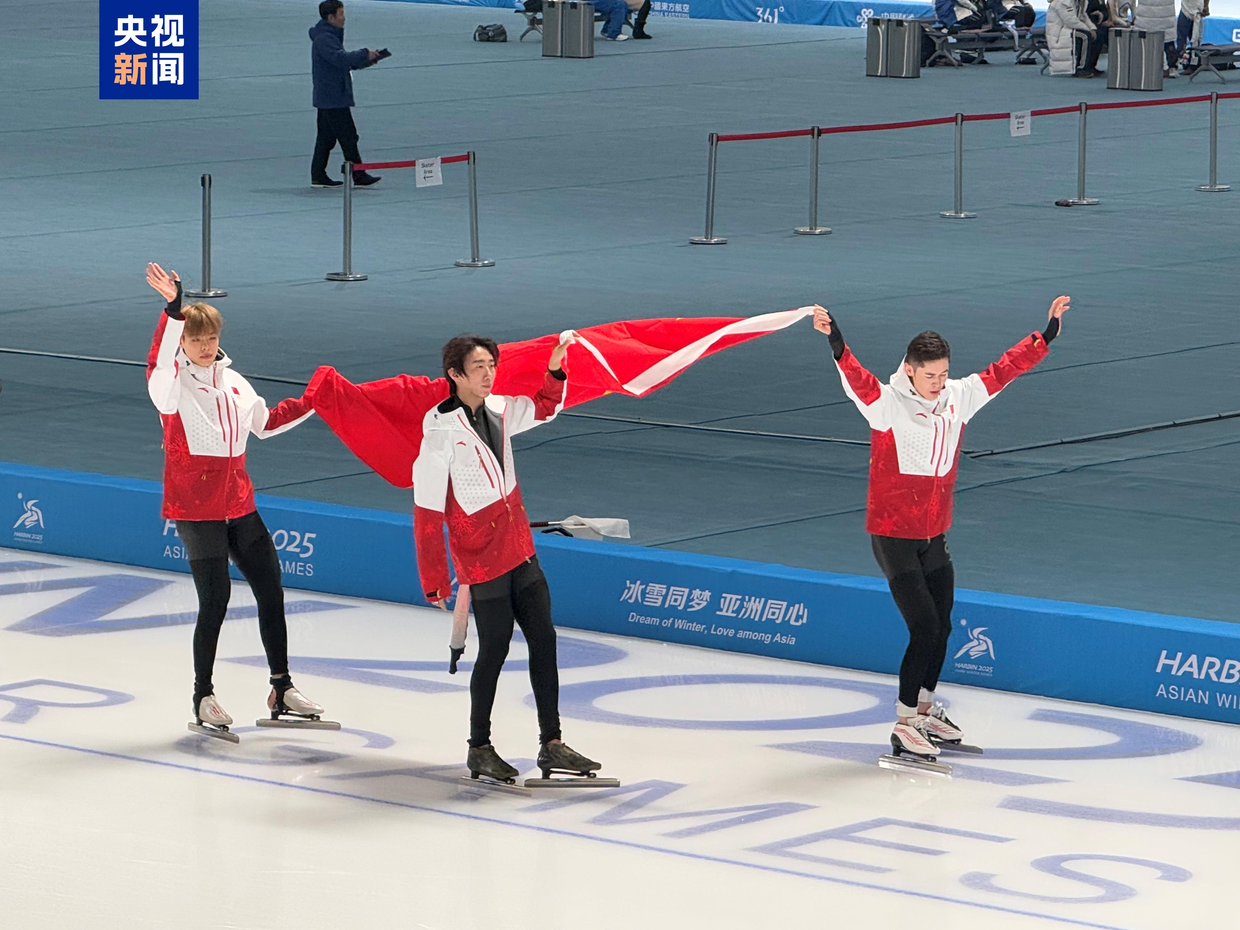 哈尔滨亚冬会速度滑冰男子短距离团体追逐,由高亭宇、廉子文、宁忠岩组成的中国队配合默契夺得金牌。