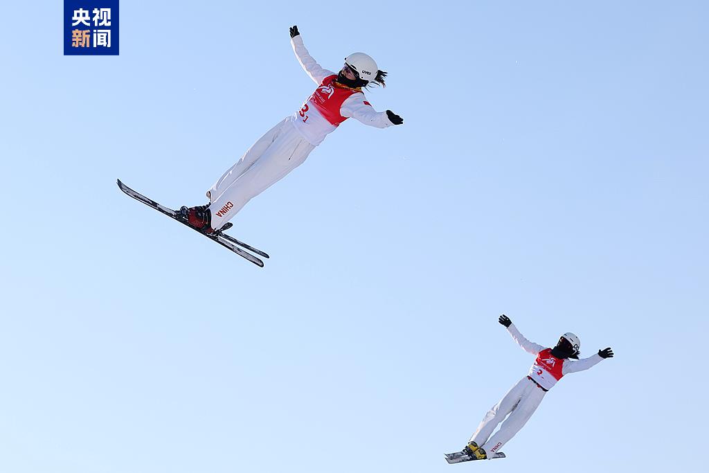 本届亚冬会,自由式滑雪空中技巧双人同步第一次成为正式比赛项目,中国姑娘获这一项目历史第一枚金牌!