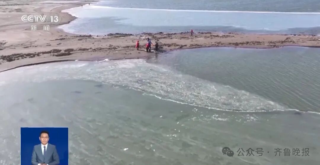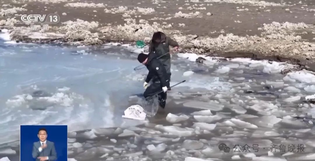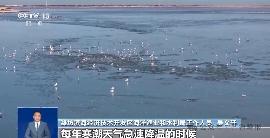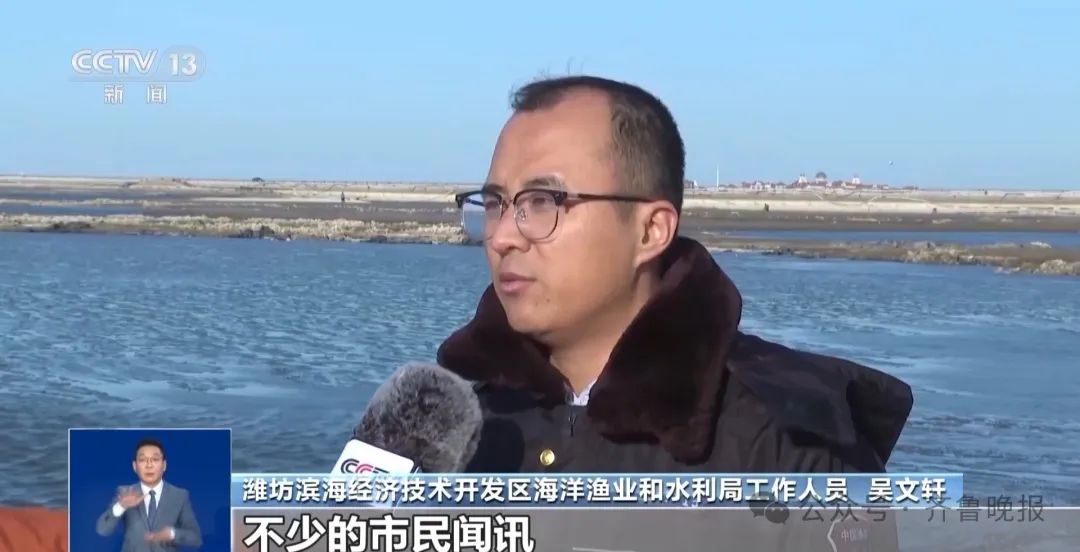 潍坊滨海经济技术开发区海洋渔业和水利局工作人员 吴文轩:不少的市民闻讯到我们当地来凿冰取鱼。最多的时候有上百人,我们也组织了人员到现场进行劝阻。