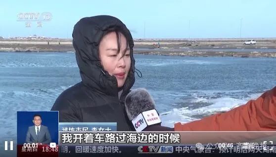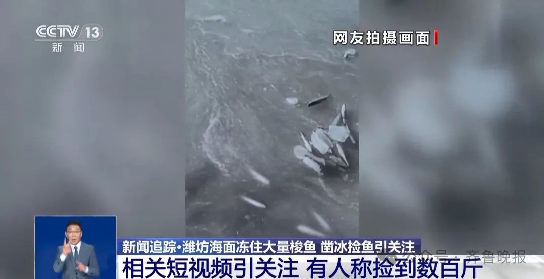 潍坊市民 李女士:我开车路过海边的时候,看到海面有很多冰冻的鱼。正好车上有铲子,我拿着铲子下去捞了一些。我就把这个视频发到了网上。附近看到的人好多也一起来捞鱼。