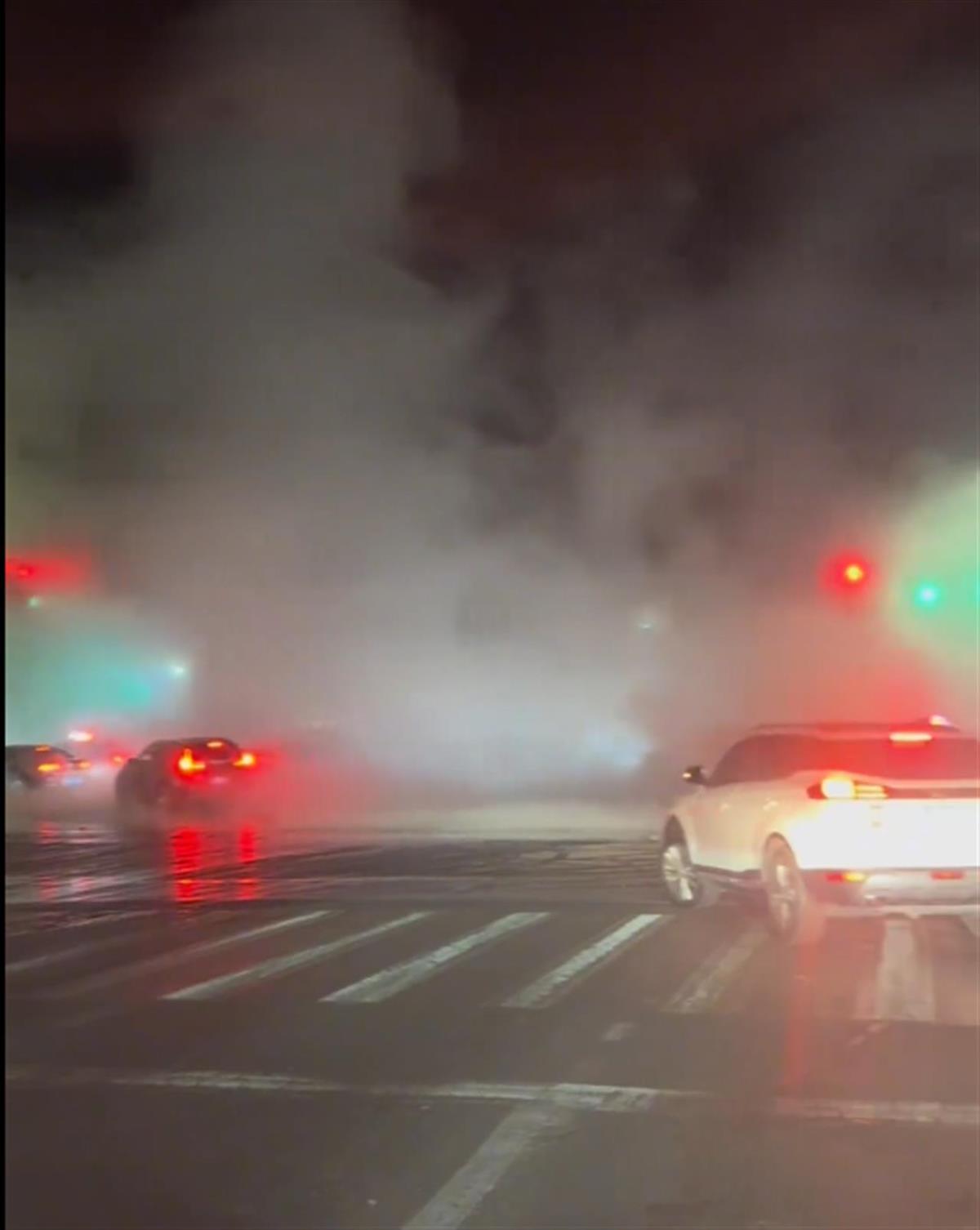 现场视频显示,夜幕中的一处路口腾起了大量白雾,多台车辆在雾中打着双闪灯。视频发布者表示,2月16日凌晨2时许,他吃完宵夜开车回家,遇上了暖气管道爆裂。有网友在评论区称,事发在阳泉市保晋路附近,还有人被烫伤。