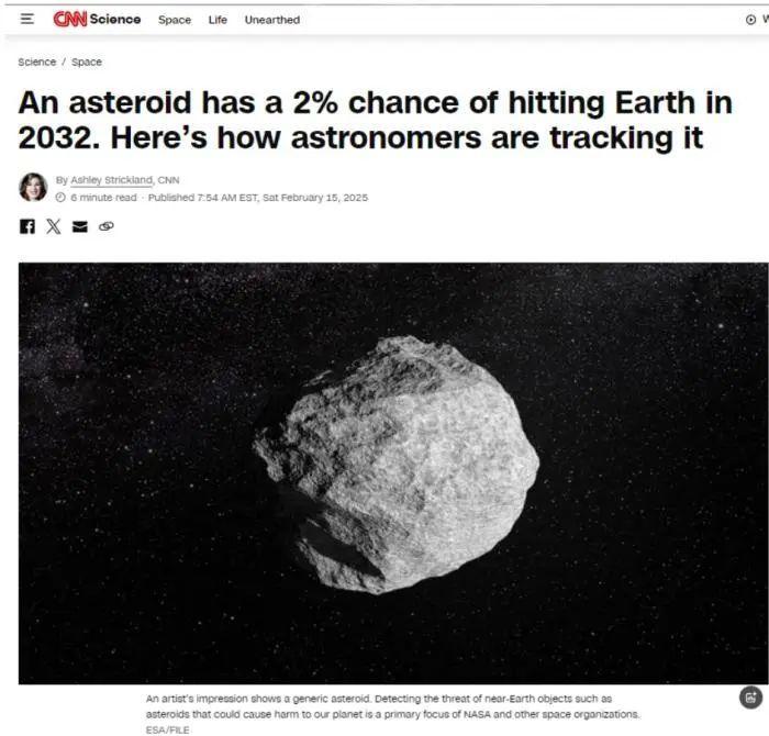 值得注意的是,最近一颗名为2024 YR4的小行星频频登上热搜。