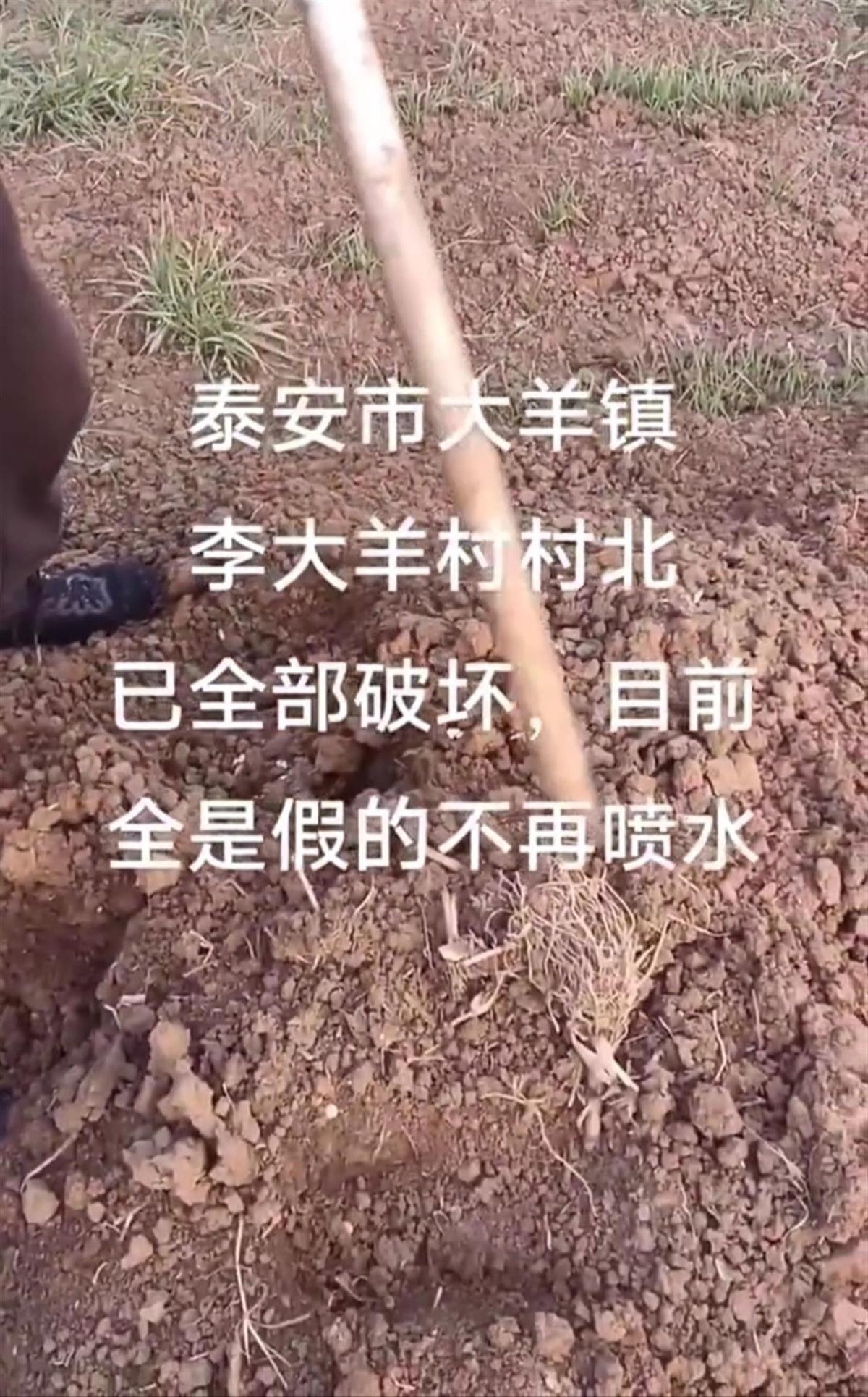 据当地媒体报道,网上传播的帖子所指项目为中央预算内高标准农田建设项目大羊片区,2023年7月份通过市级验收,一直在正常使用。但是后期,该土地承包户个人为了机械耕作方便,私自将喷灌杆拆除,造成设备损坏。该视频发布当天,东平县组织县农业农村局、大羊镇组成工作专班,到视频拍摄地进行现场查验。东平县农业农村局负责同志表示:“为保证春耕春种,我们从2024年年底就开始对全县的高标准农田设施进行排查和整修。大羊镇李大羊村高标准农田共800余亩,部分喷灌设施出现问题,我们正在和大羊镇政府相关部门一起加班加点进行修复,这部分喷灌设施今天就能修复完毕,确保群众的正常使用。”大羊镇政府表示,今后将深刻吸取教训,认真查摆工作中存在的薄弱环节,加强日常巡查管护,发现问题及时处置,确保项目发挥效益,维护好群众的正当权益。