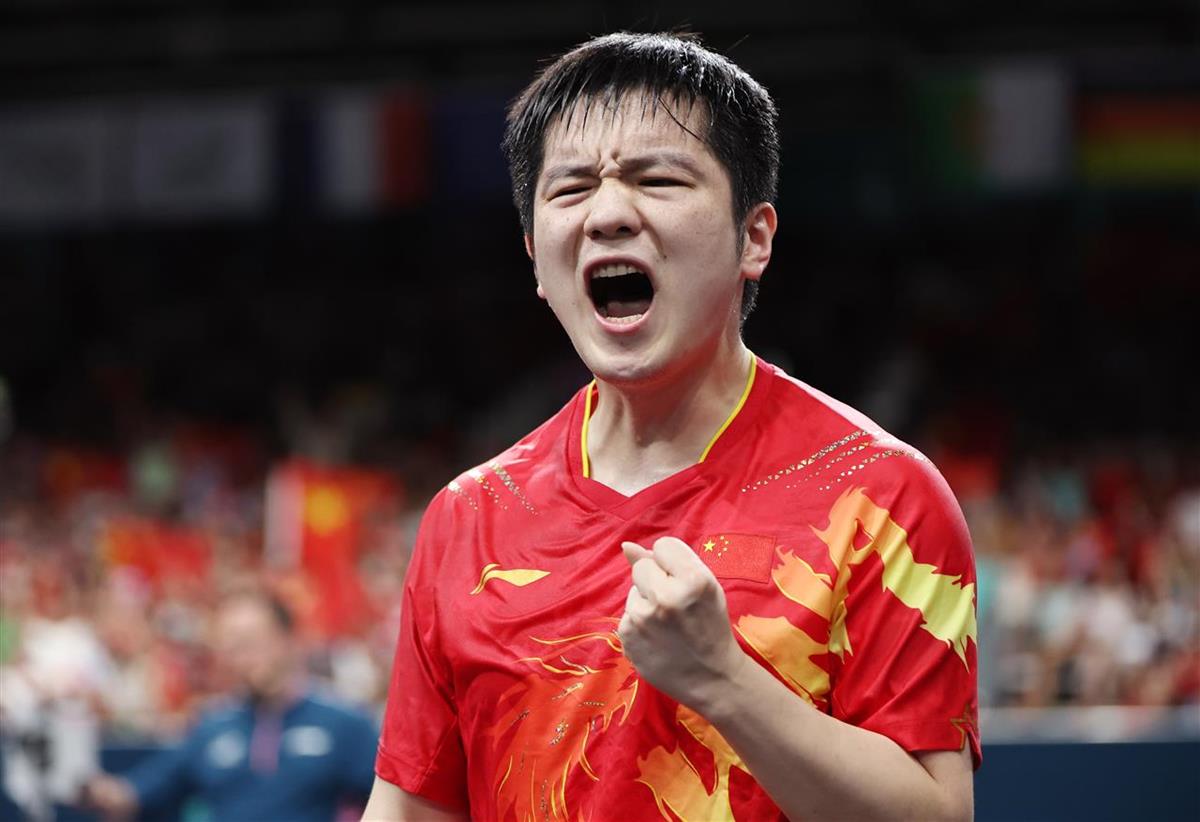 樊振东在巴黎奥运会比赛中(图源:新华社)