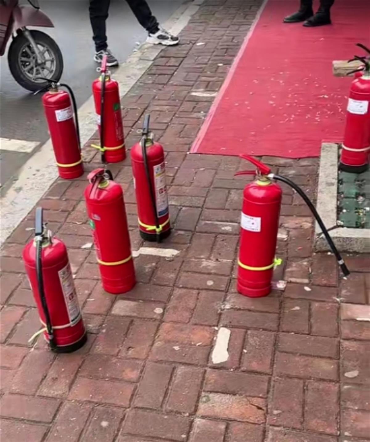 28日上午,辖区梓埠派出所工作人员向极目新闻记者介绍,他们接到了这个警情,有工作人员去现场处置。他看到所里多了几个灭火器,应该是收缴过来的,消防的人不会干这种事的。