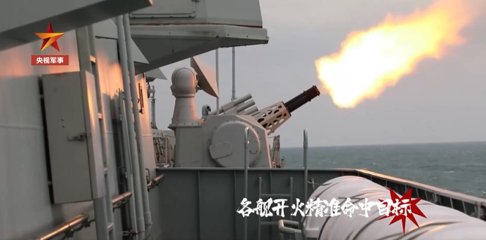 近日,东部战区海军某护卫舰支队资阳舰、宜兴舰等多艘舰艇组成编队,奔赴某海域开展实战化训练。训练中,舰艇编队围绕对海突击、舰炮射击、联合搜救等实战化课目展开专攻精练。看各舰炮弹划破长空,精准命中目标。