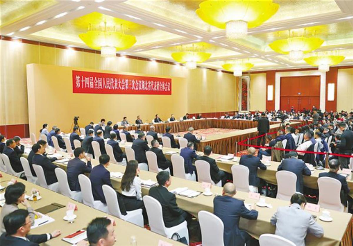 3月6日上午,十四届全国人大三次会议湖北代表团举行第三次全体会议暨媒体开放日活动(图源:湖北日报)