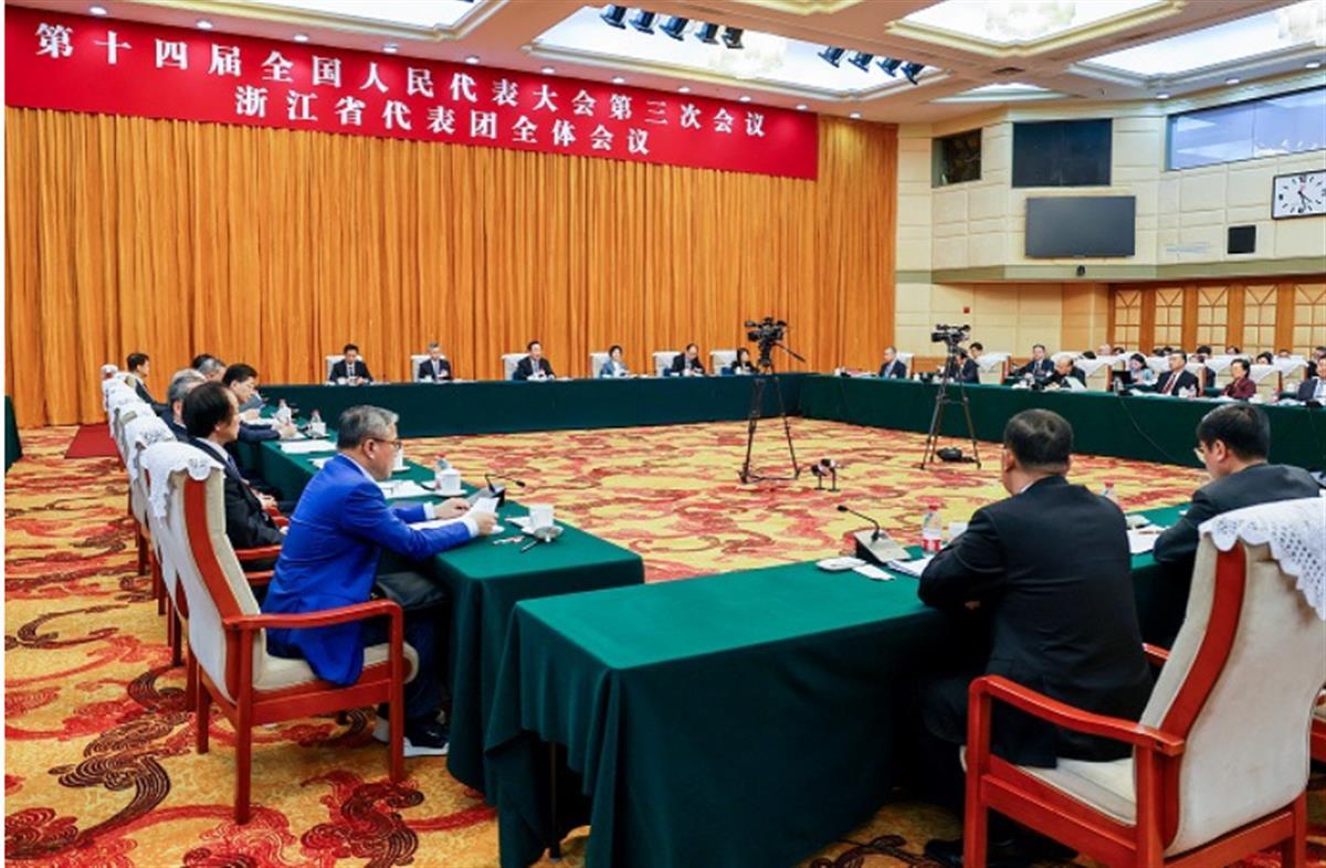 省委书记、省人大常委会主任王浩主持会议,刘捷、万立骏、傅明先、陈金彪、吴晶参加审议,海关总署署长、党委书记孙梅君等中央和国家有关部委负责同志到会听取意见。胡伟、徐仁标、施惠芳、李校堃、吴舜泽、张亚波、方豪龙、蔡浙飞、郑国等9位代表,围绕一体建设教育强省、科技强省、人才强省,加快传统产业转型升级,大力培育科技领军企业,高标准建设大宗商品资源配置枢纽,谋深做实“强城”“兴村”“融合”三篇文章,擦亮高质量发展建设共同富裕示范区的绿色底色,繁荣发展文化事业文化产业,加强产业工人队伍建设等方面进行了审议发言。审议结束后,代表们留出时间接受境内外记者集体采访。