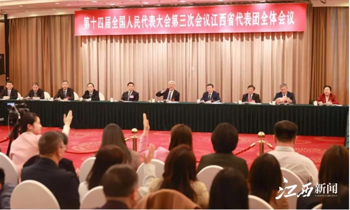 据江西日报报道,3月6日下午,十四届全国人大三次会议江西代表团举行全体会议,继续审议政府工作报告,审查计划报告和草案、预算报告和草案,并向中外记者开放团组。