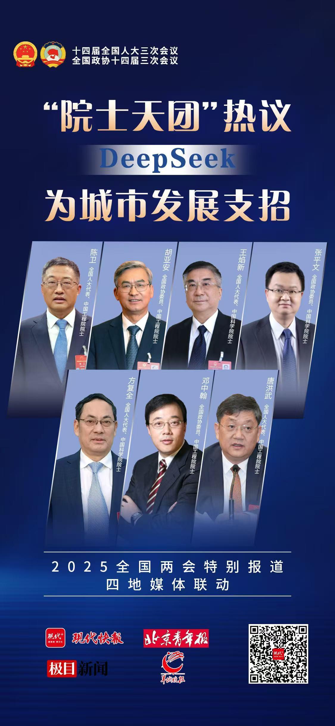 3月7日,现代快报/现代+发起,北京青年报、羊城晚报、楚天都市报极目新闻四地媒体联动,采访多位院士代表委员,聚焦人工智能发展建言献策,“院士天团”为城市发展支招。
