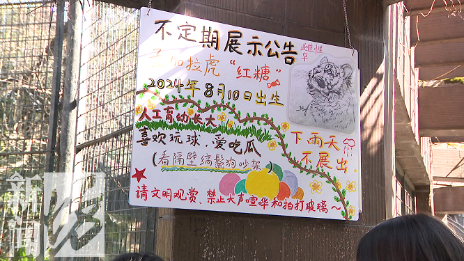 “红糖”出生于2024年8月10日,刚出生就被母虎弃养了,一直由动物园的“奶爸”人工哺育到四个月后,才到中型猛兽展区进行展出,所以“红糖”的性格特别亲人。