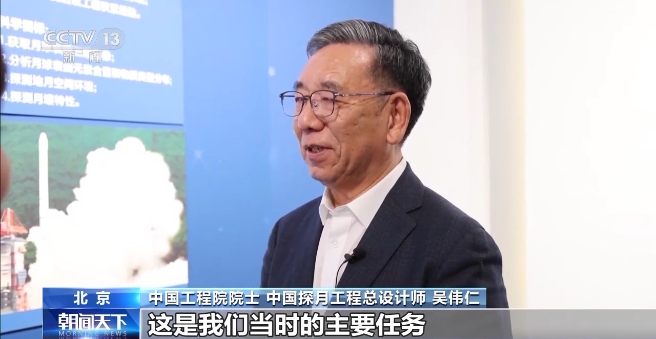 吴伟仁介绍,中国探月工程2004年立项,立项之初就确定了“绕、落、回”三步走的战略,当时日本和印度都在推进他们的探月任务,同台竞技,如何第一次就确保成功?