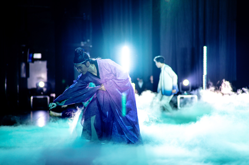 以《兰亭集序》为灵感的舞蹈作品《永和九年》现场剧照。(董天晔 摄)