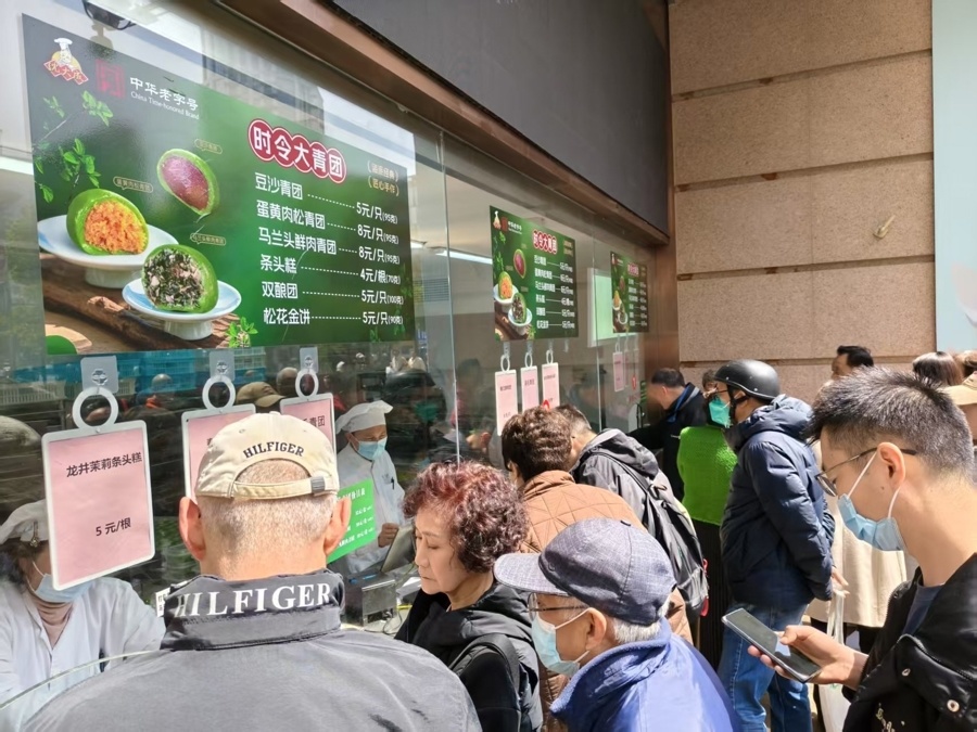 吃青团曾是寒食节的习俗之一。(任翀 摄)