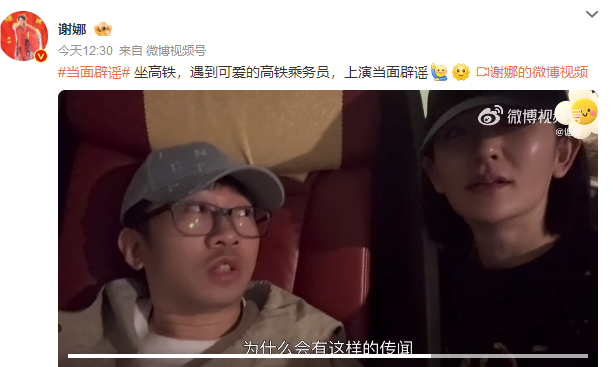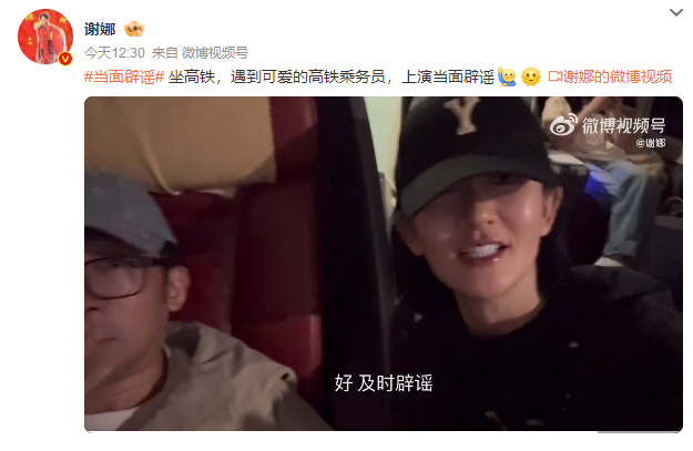 4月8日,主持人谢娜微博发布视频,辟谣自己怀孕的传闻。其发文称:“坐高铁,遇到可爱的高铁乘务员,上演当面辟谣。”