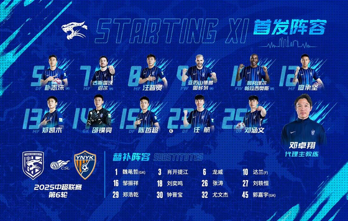 本场比赛,武汉三镇在排兵布阵上发生了一些变化,首发没有选择和前两场一样的442阵型,而是采用了433阵型。图多列出任中锋,帕拉西奥斯、绍尔在两翼。中场由汪晋贤、郑凯木和廖承坚三人搭档,后防线由邓涵文、任航、朴志洙和陈哲超四人坐镇。