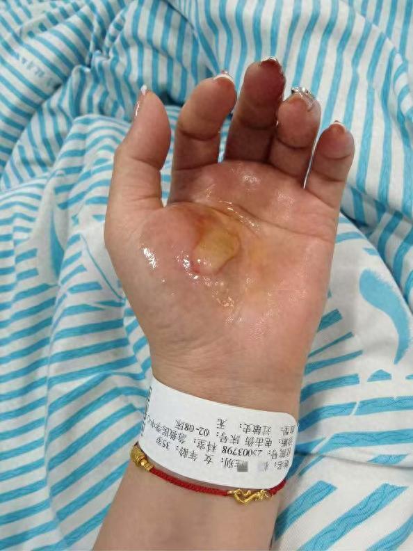 目前,女子在医院救治,医生诊断是电击伤,其眼眶里布满血丝,左手手掌上有明显的烫痕。