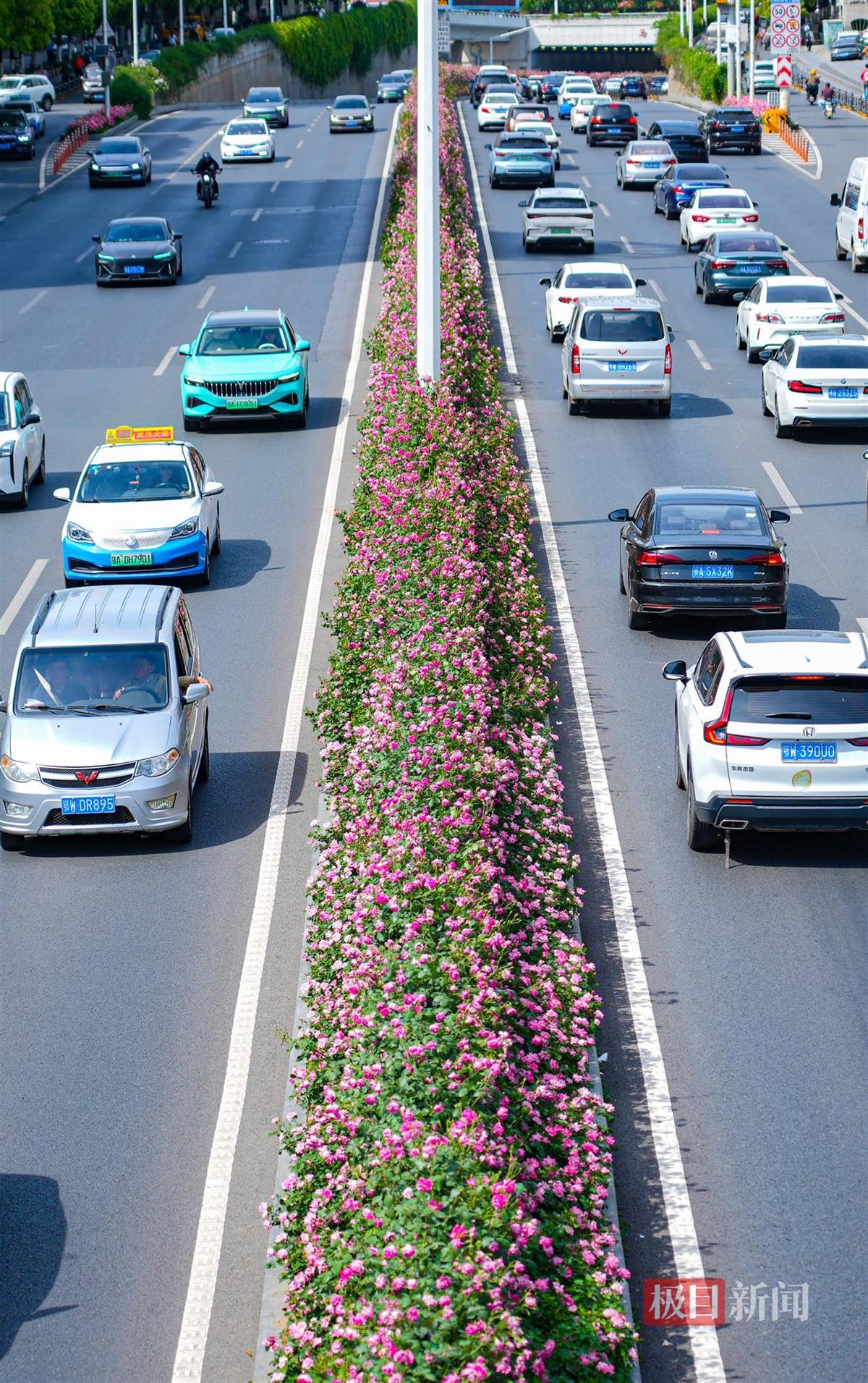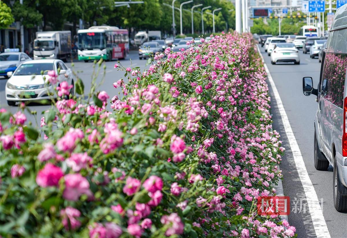 且看,武汉洪山珞狮南路,二环线车流最密集处之一,粉嫩月季,花墙如瀑,一路吐芬芳,这是武汉道路月季最出彩的C位,也是浏览量最大的月季路段。在这里堵车心不堵,反而心情愉悦,“上班路上,欣赏花墙,点亮一天的好心情!”望望月季,纾解心绪,李女士将早间的这份开心分享至朋友圈。
