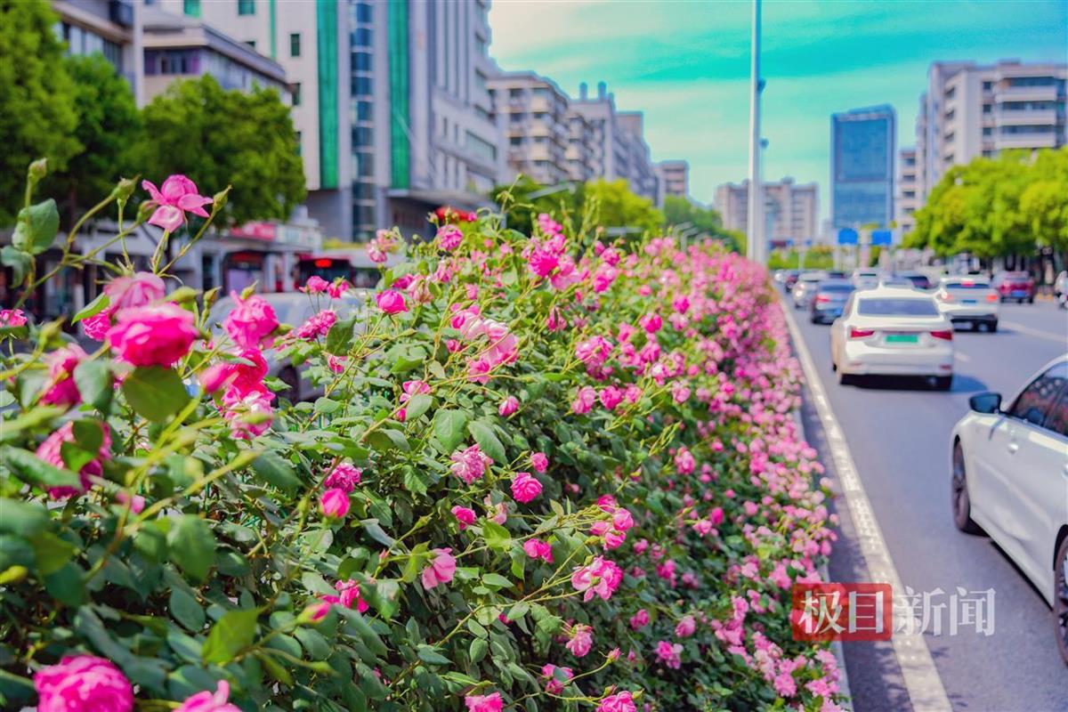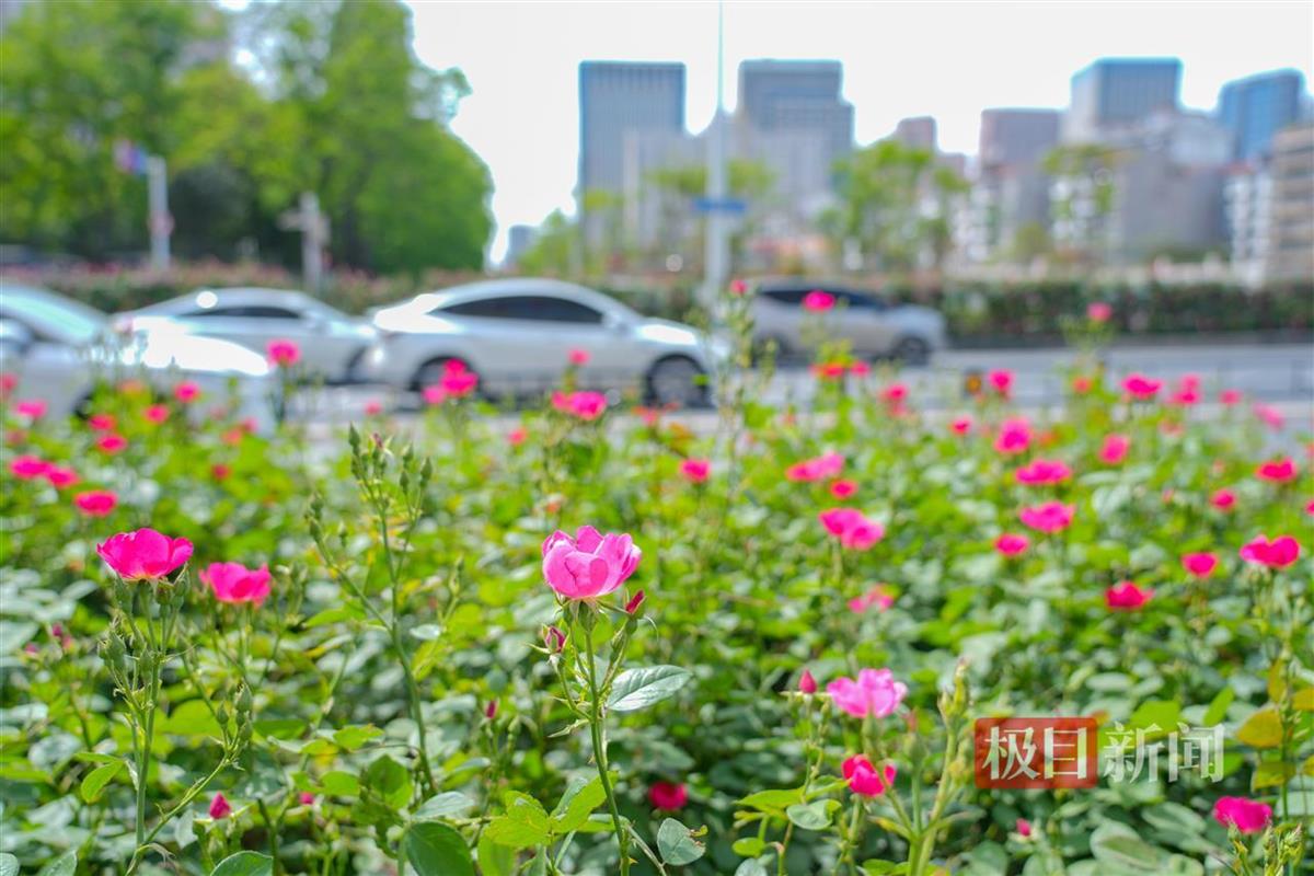 珞喻路街道口,是苏女士每天上下班必经之路,“也就是一夜之间,街道口的粉红月季全开了!”