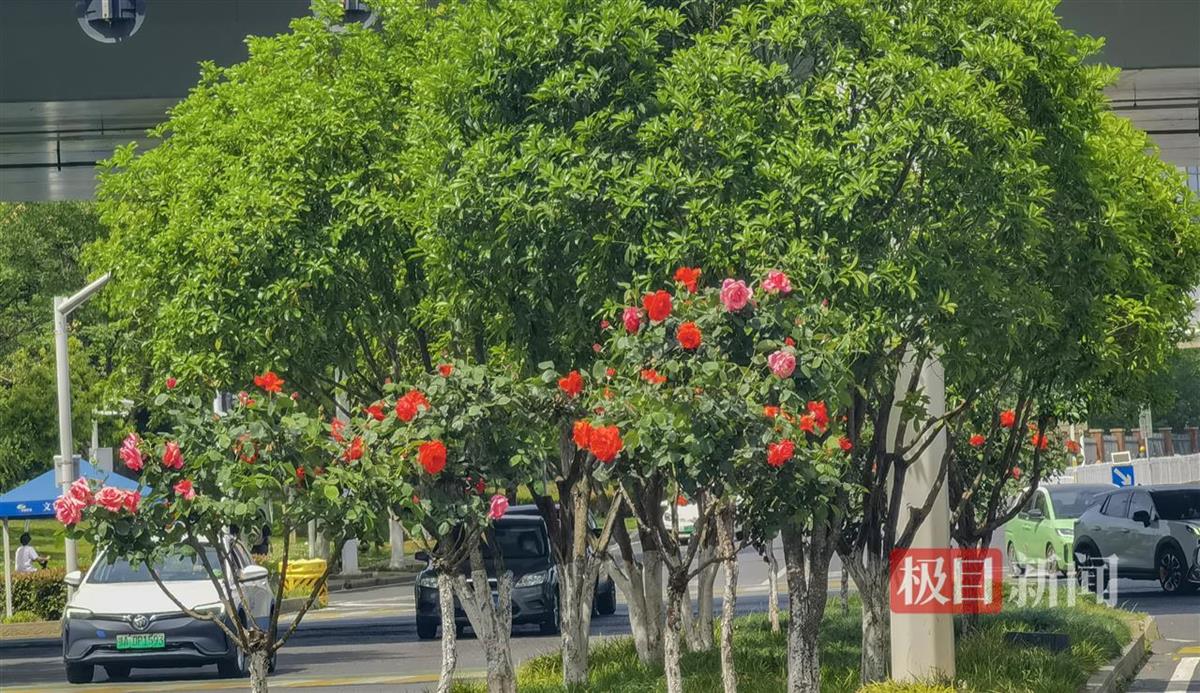 汉阳鹦鹉大道,树状月季像是捧着一束花送你