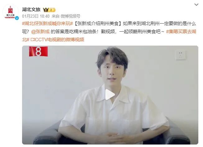 作为湖北荆州人,张新成也曾多次推荐家乡荆州,为荆州打call,并向大家发出邀请:“欢迎你们来我的家乡——荆州。”