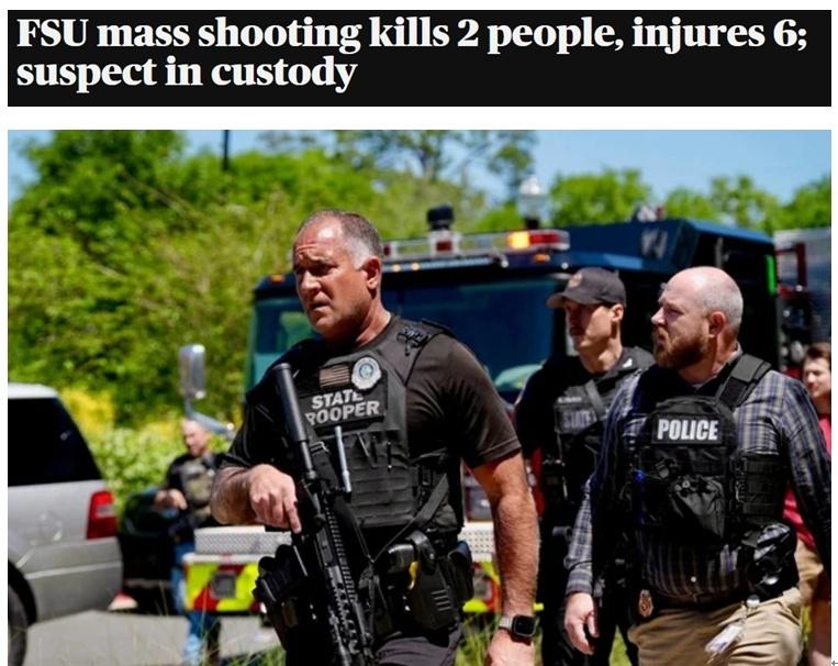 一个多星期前,佛罗里达州立大学也发生了校园枪击案,造成2人死亡,6人受伤。