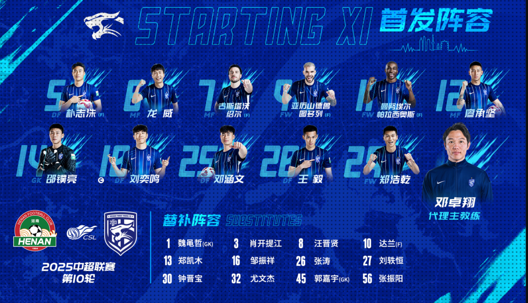5月1日晚,中超联赛第10轮,河南队主场迎战武汉三镇,比赛在郑州航海体育场进行。武汉三镇凭借绍尔下半场的远射扳平比分,以及图多列第89分钟的头球破门,以2比1逆转战胜对手,实现连续两轮逆转,迎来本赛季首次连胜。