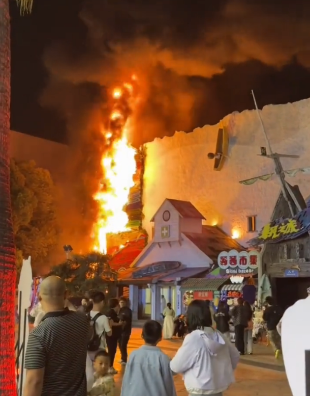 多位游客在网上发布的视频显示,失火的区域位于茜茜市集不远处,失火时附近的舞台上还有多人在表演节目。游客告诉极目新闻记者,事发时正在附近游玩,开始还以为是表演的节目与火有关,后来才发现舞台附近的一个建筑起火,很快消防人员赶到将火扑灭。