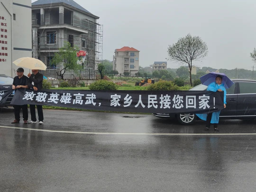 载有英雄高武骨灰的车辆抵达鄱阳老家