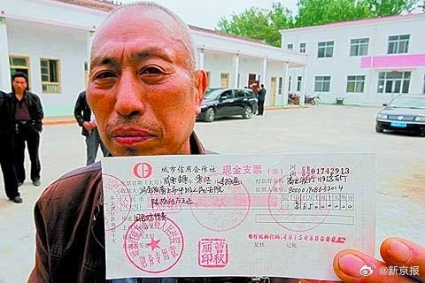 在国家赔偿案件处理中,商丘市中院与赵作海经协商达成赔偿协议:商丘市中院一次性支付赵作海国家赔偿金50万元,生活困难补助费15万元,两项共计65万元。2010年5月13日,时任商丘市中院院长亲赴赵作海居住地,将65万元交到赵作海手中。赵作海撤回赔偿申请,并表示以后安心生活。