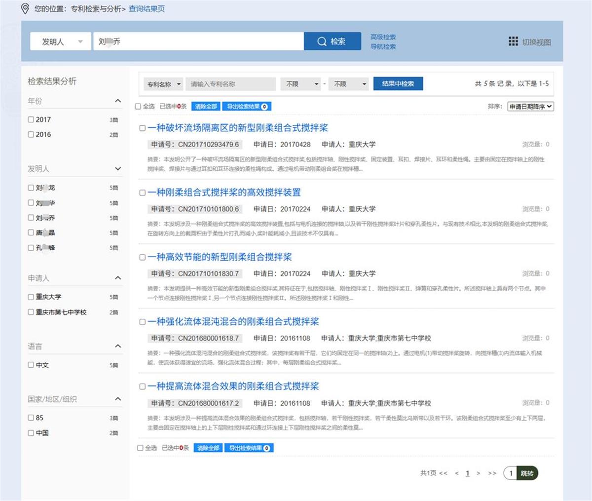 重庆大学知识产权信息服务中心网站收录的刘某乔的发明专利