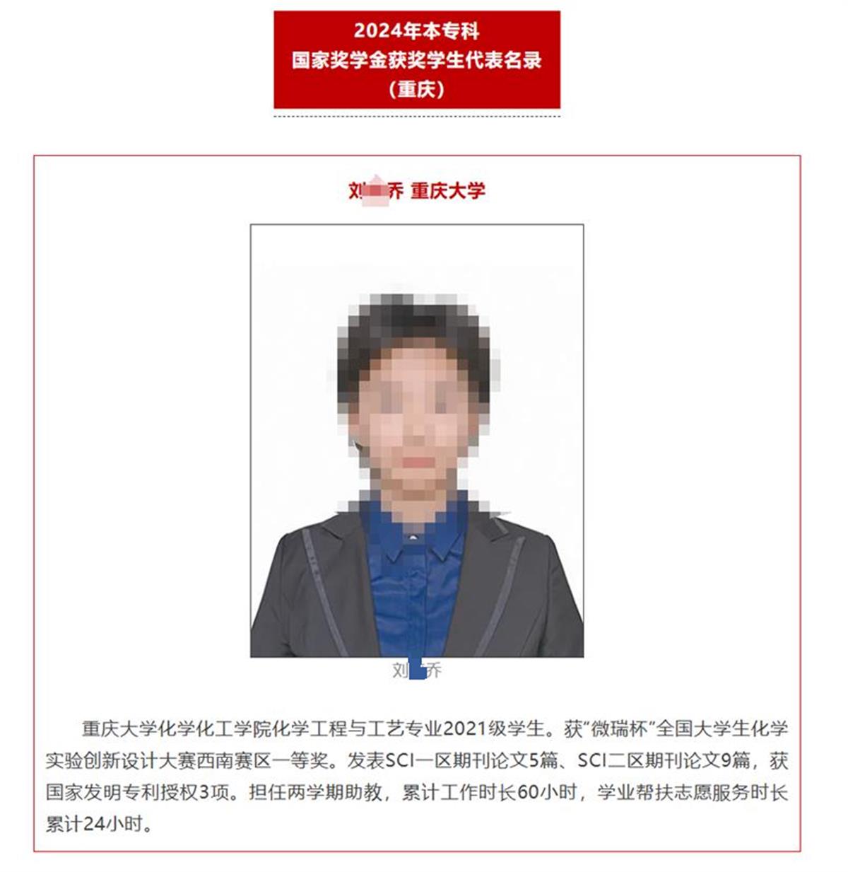 媒体报道显示,SCI论文方面,以重庆大学、刘某乔姓名作为关键词,在“ReseachGate”官网检索看见,确有14篇来自重庆大学刘某乔的SCI论文发表,其中最近一篇的发布时间为2024年11月。不过在这14篇论文中,刘某乔均非第一作者。多篇论文的作者列表里,出现了重大教授刘某华、刘某龙等。