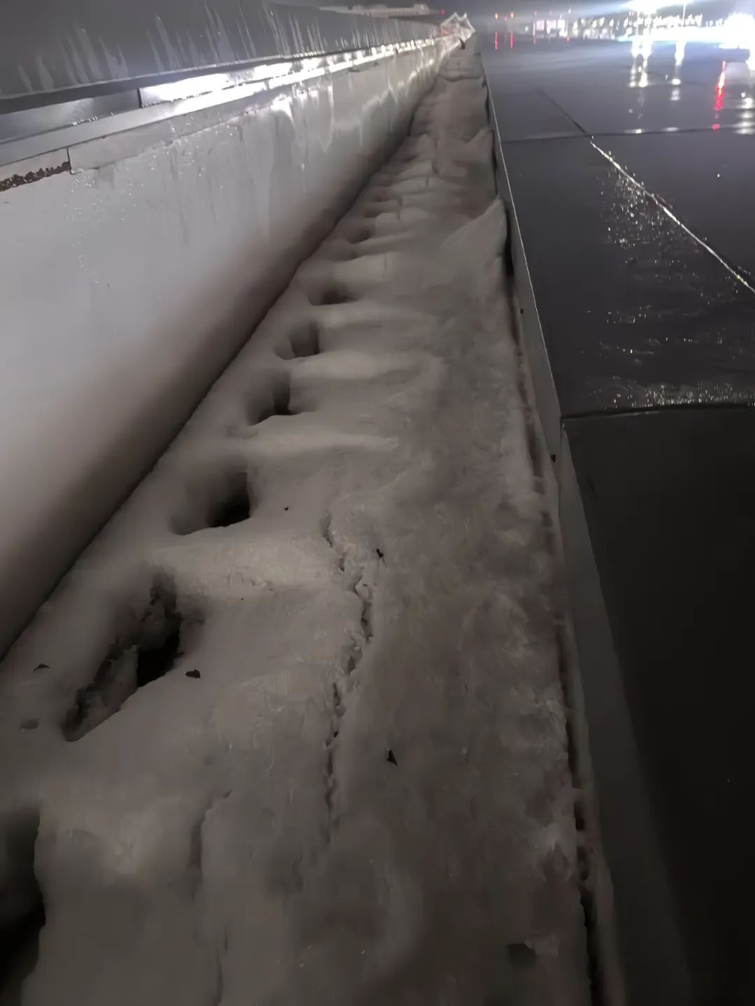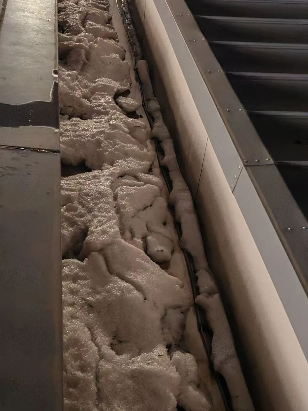 随即,机场立即启动用于冬季的屋面融雪电伴热加热系统实施除冰,工作人员同步登临屋面及时清理排水槽内冰块,在当晚20时40分基本实现疏水止漏。根据现场查看和监控画面显示:当时大量冰雹瞬时集中降在T5航站楼北一、二指廊区域,T5航站楼南部三条指廊及T2、T3航站楼屋面均未发现冰雹。