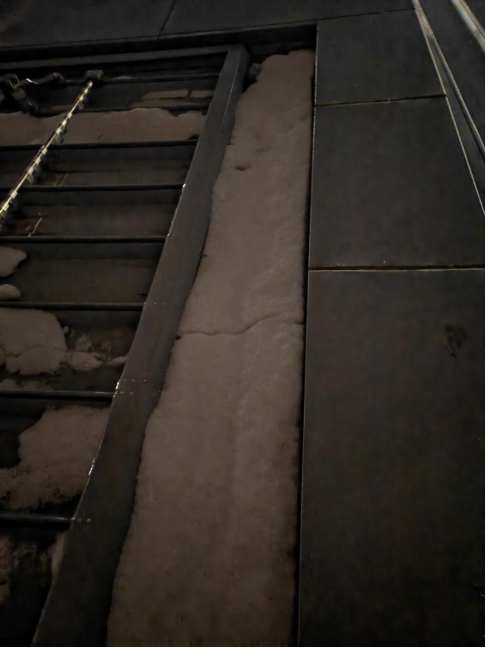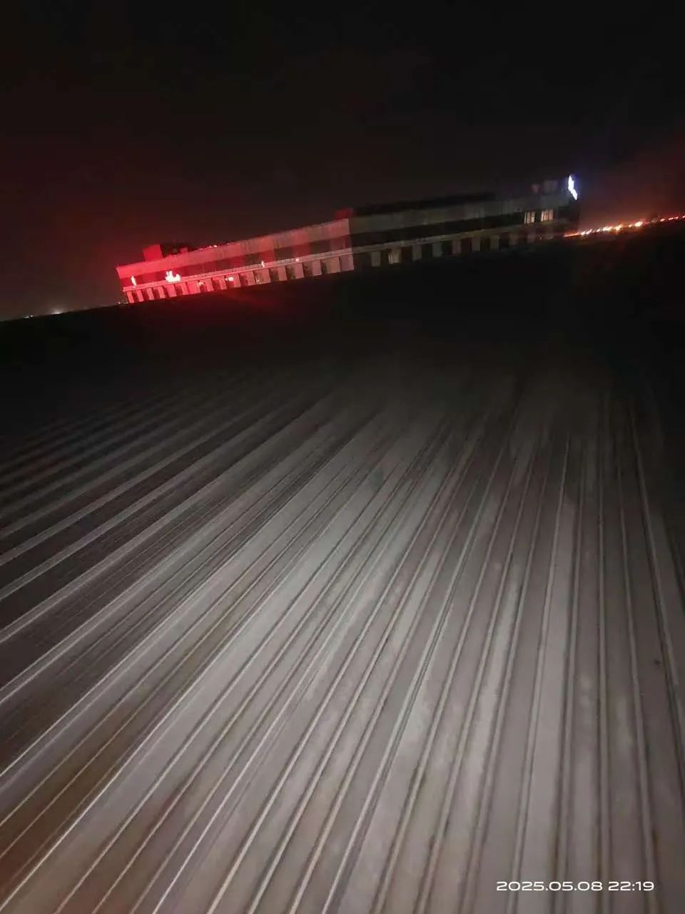 融雪电伴热开启后的T5航站楼北二指廊屋面