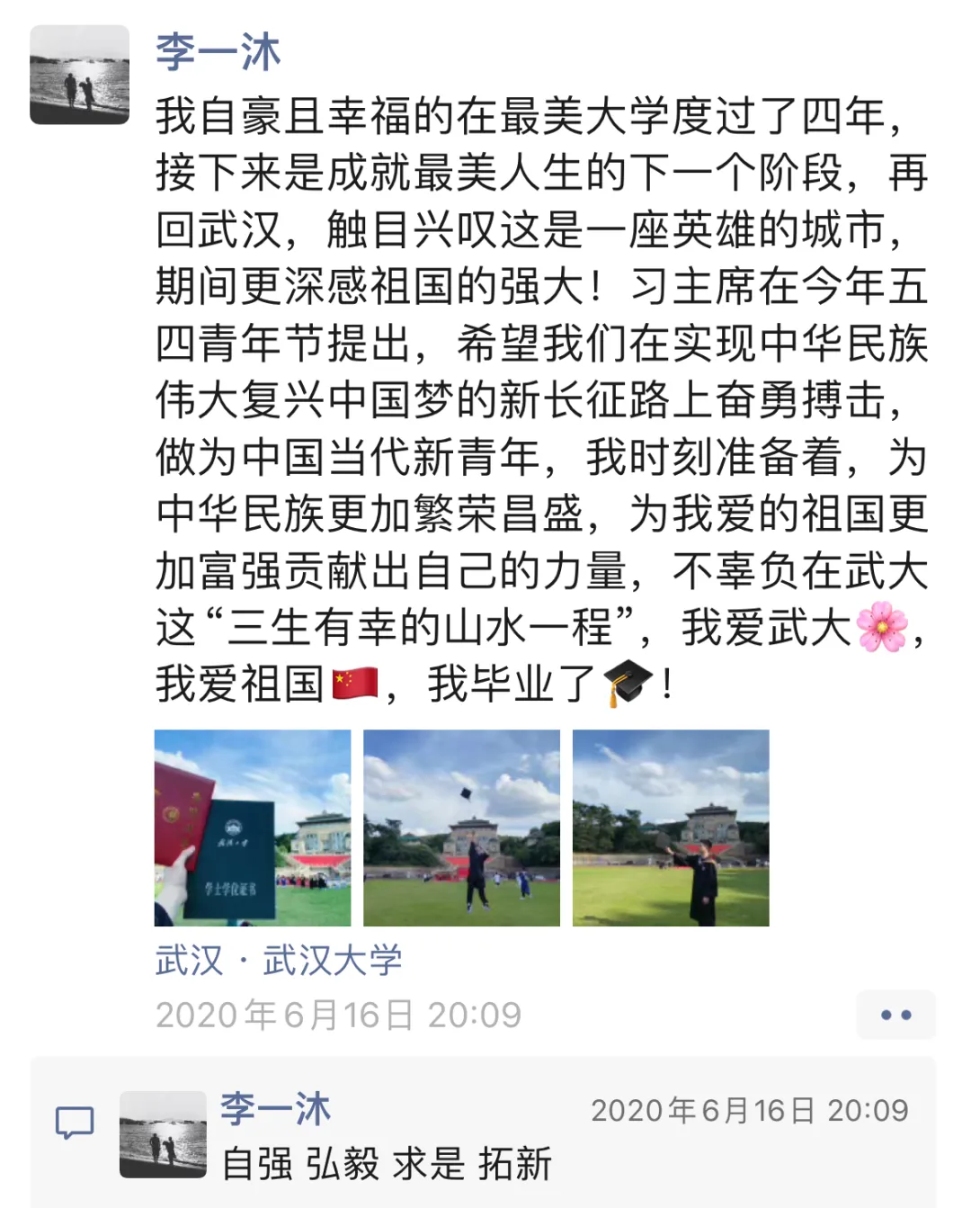 ▲李一沐毕业前夕发布的朋友圈