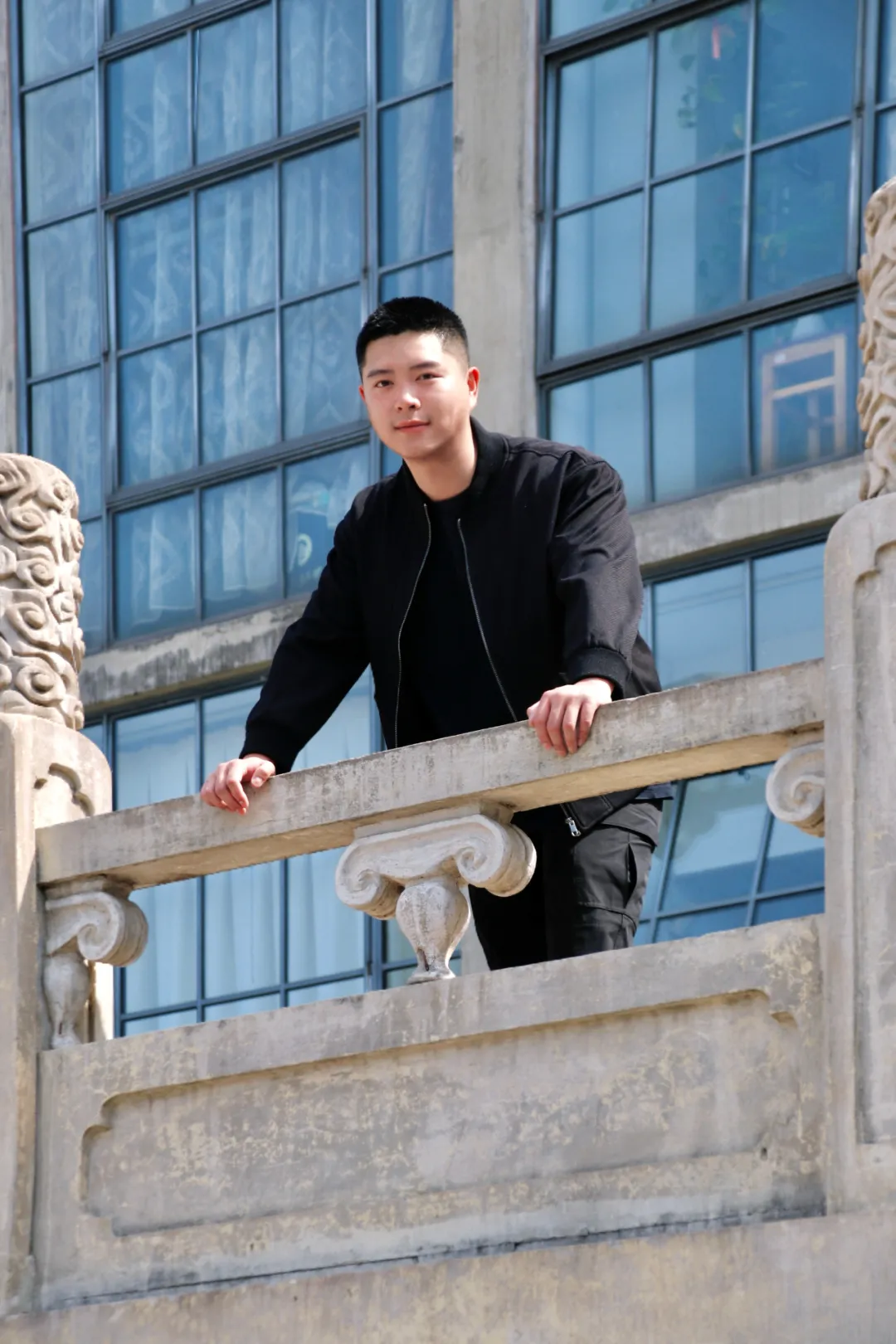 ▲李一沐在九一二操场上拍摄毕业纪念照