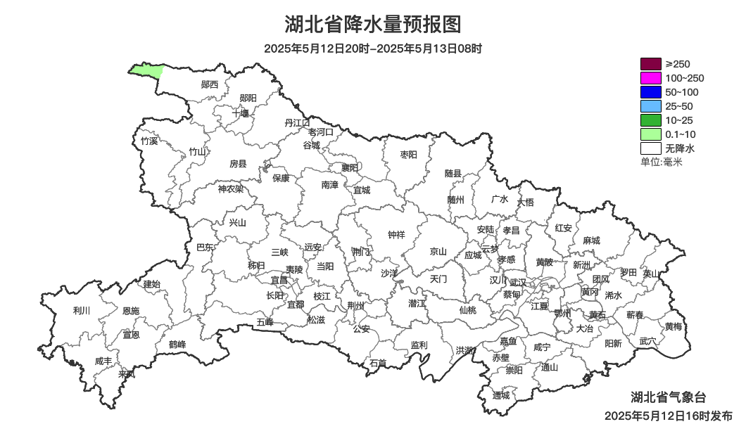 5月12日20时-13日08时,全省晴天到多云,其中十堰西部夜间转阵雨。最低气温15~20℃,偏南风3到4级、阵风5到6级。