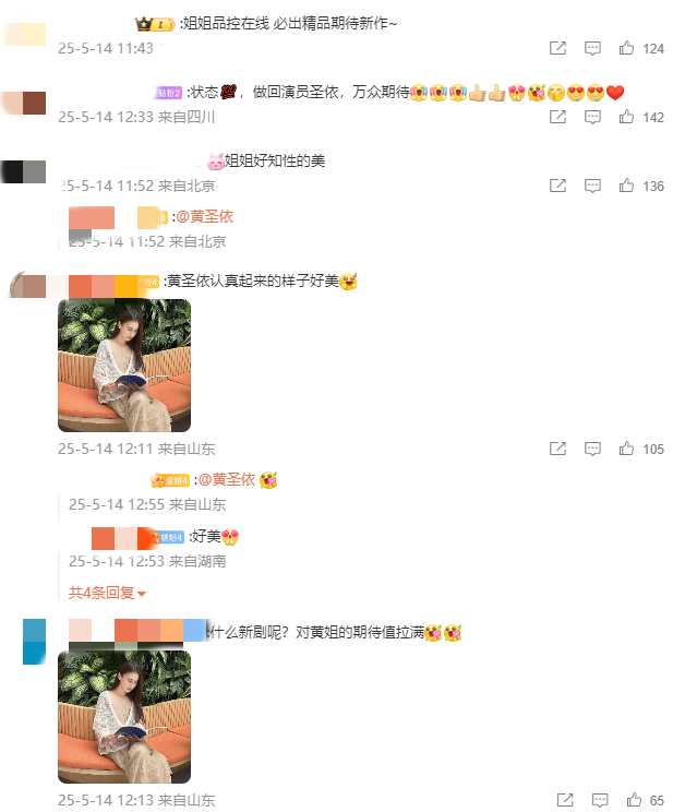 网友们对其新剧表示期待:“必出精品期待新作”“对黄姐的期待值拉满”……