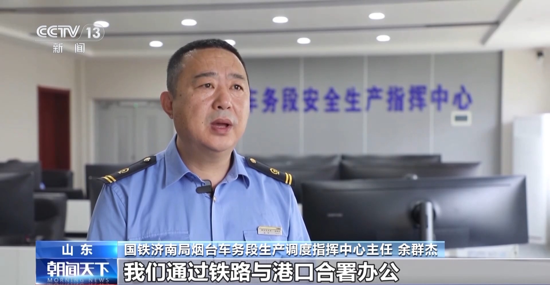 国铁济南局烟台车务段生产调度指挥中心主任 余群杰:我们通过铁路与港口合署办公,将跨境货源与本地货源进行统筹规划,保证货物到港1小时内装车,3小时内启运。