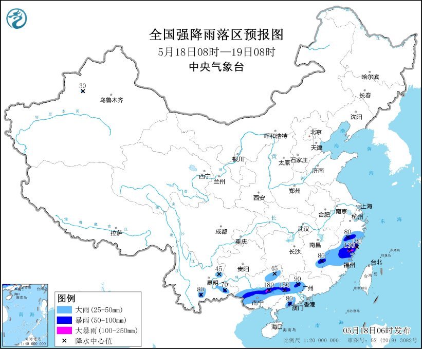 中央气象台5月18日06时继续发布暴雨蓝色预警: