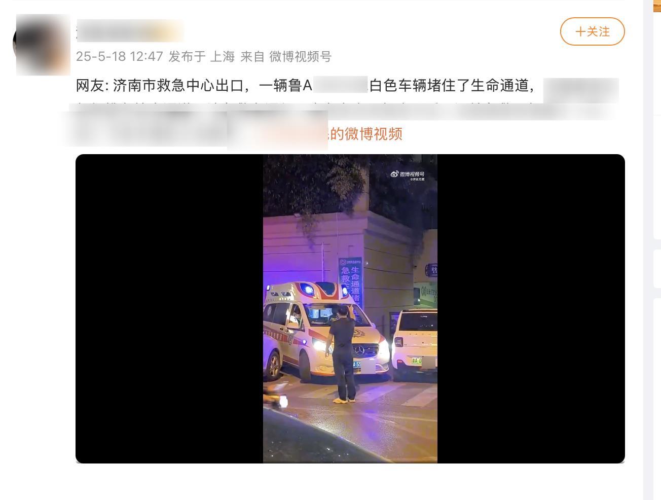 5月18日,有网友反映,在济南市一处急救中心出口,一辆急救车被违停小车挡住,无法驶出。视频显示,当时天色已黑,这辆急救车已拉响警报,该车辆在市民的指挥下多次左右腾挪,试图从两辆违停的小车中间驶出,但十分困难。在约1分钟后,其中一辆鲁A牌照小型新能源车的司机赶到现场,将违停车辆挪开,让出生命通道。