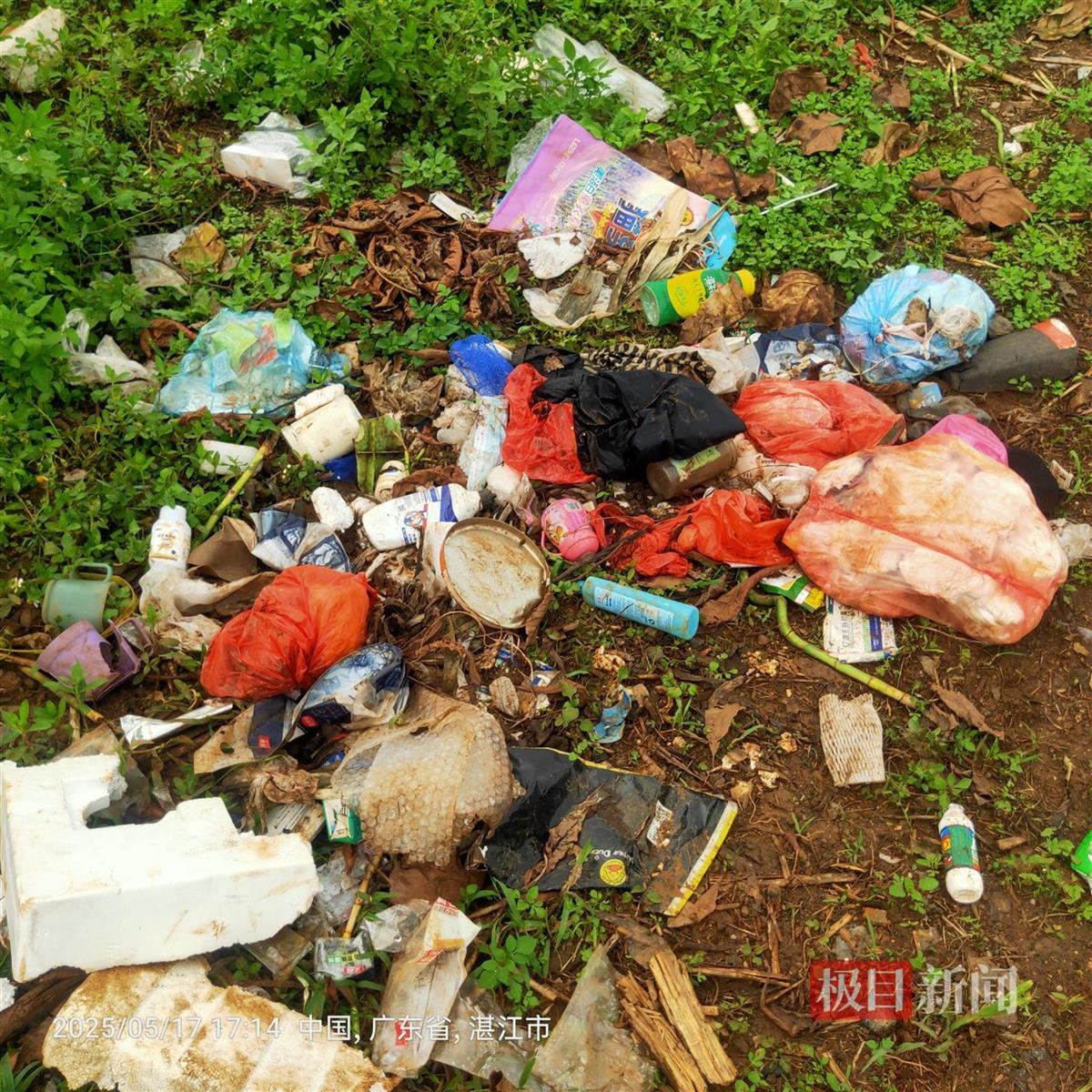 近日,家住广东湛江的村民陈先生向极目新闻反映,湛江南国花卉科技园有限公司长期将园区垃圾倾倒在该市麻章区麻章镇近沈海高速的空地上。