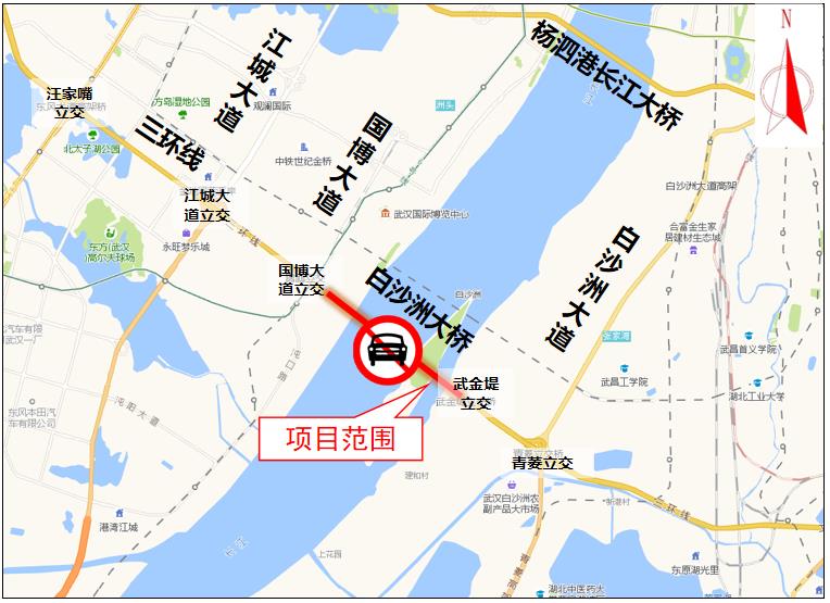 (一)由洪山往汉阳方向需通行白沙洲长江大桥的车辆,可通过武金堤立交绕行武金堤大道、青菱河路,或通过青菱立交绕行青郑高速,或提前绕行黄家湖大道等周边道路通行沌口长江大桥。