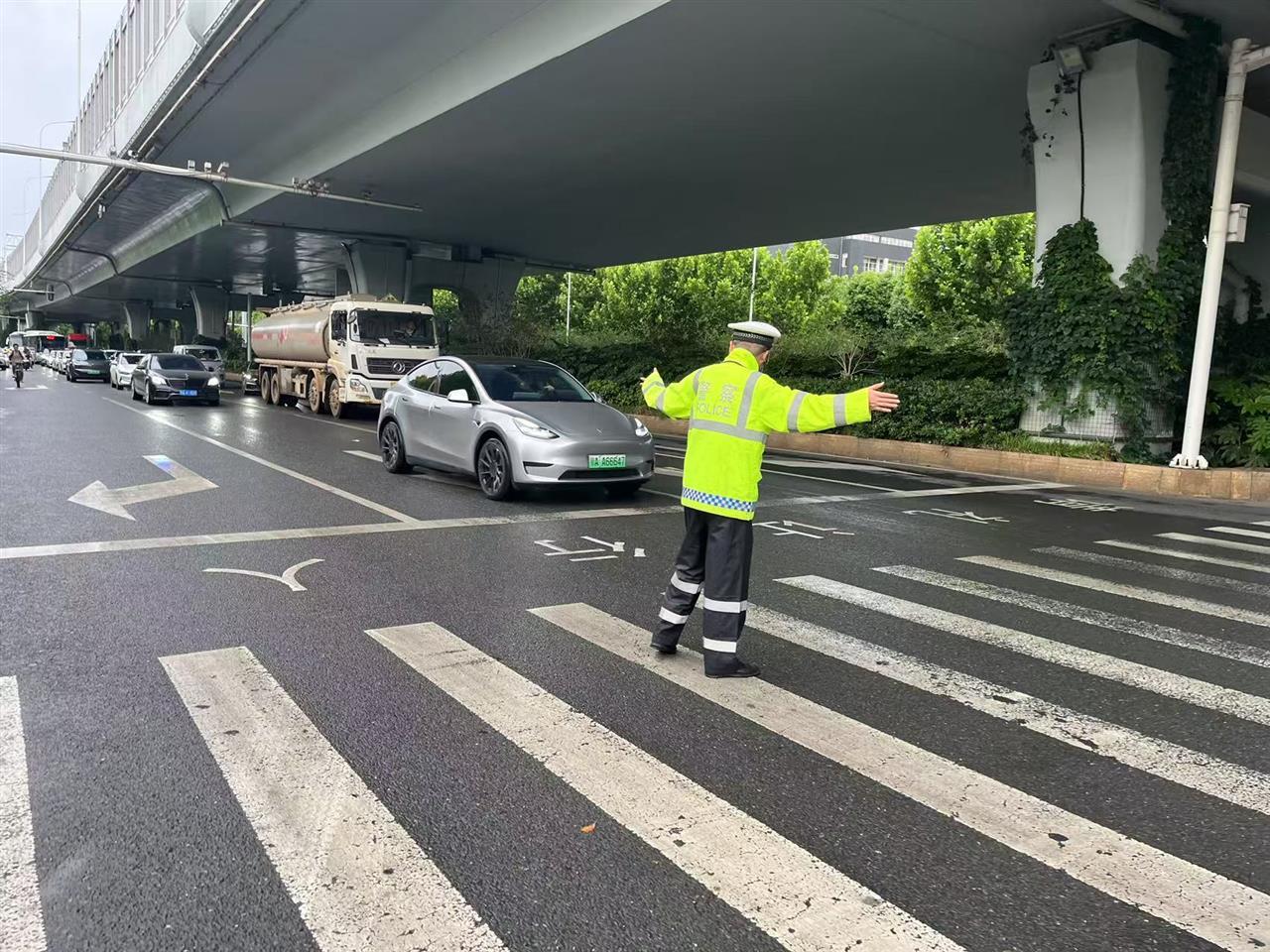 而在武汉软件工程职业学院门前,为了保障学生、家长和路过市民的出行安全,民辅警们加强了对过往车辆的管控力度。他们引导接送学生的车辆即停即走,对于一些不熟悉路况的司机,他们也会耐心地给予指引,帮助他们顺利抵达目的地。“往前直走,过两个红绿灯后右转!”这样的指引声,在暴雨中不断响起。