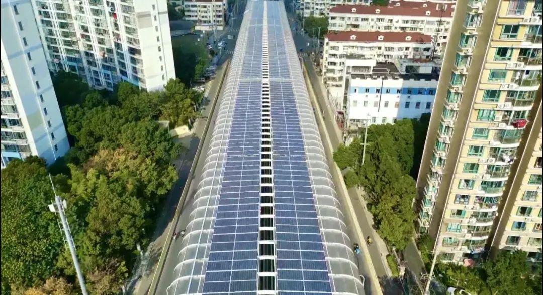 公开信息显示,华电上海虹梅南路高架“隔声棚+光伏”项目,利用虹梅南路高架全影型隔声棚顶面2.6万平方米空间建设光伏发电系统,系国内首个城市高架道路“光伏+隔声屏”一体化示范工程。该项目开创了交通基础设施与新能源融合开发的新模式,全生命周期为上海输送清洁电力3750万千瓦时、减排二氧化碳31,000吨,项目通过高效利用城市立体空间,实现土地资源复合开发,为城市交通绿色低碳转型提供创新样本。“交通+光伏”项目概念由上海市交通委创新性提出,致力于通过在既有或新建交通设施上加装光伏设施,实现改善上海交通能源结构的目标。