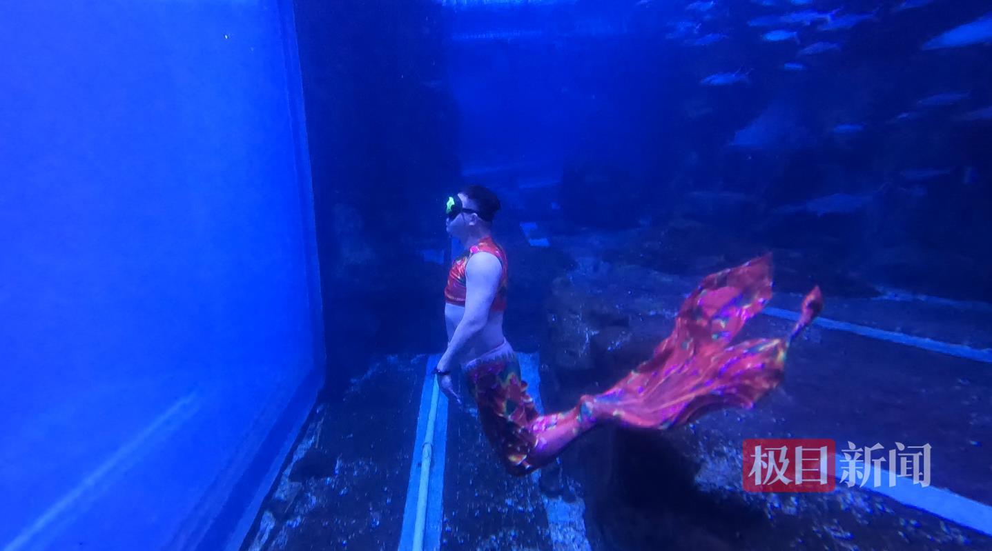 该海洋馆市场部总监高女士告诉极目新闻记者,东北大花胖头鱼表演者刘国强此前是海洋馆潜水员,日常进行清理展缸、大池以及饲养等工作。2024年春节前,因其他女性美人鱼表演人员回家过年,表演团队人数不足,临时安排刘先生和另外一名潜水员同事梁先生顶班,没想到春节期间大花胖头鱼表演爆火,深受游客和网友喜爱。随后,海洋馆将两人纳入美人鱼表演团队。