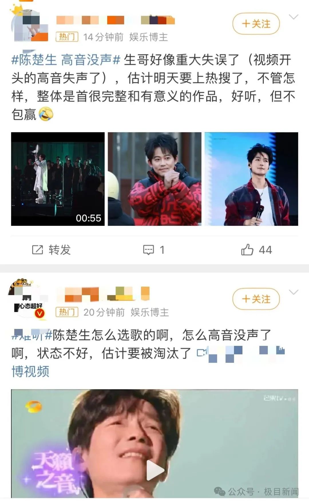 值得一提的是,在《歌手2025》念热搜环节,陈楚生直面高音的失误。