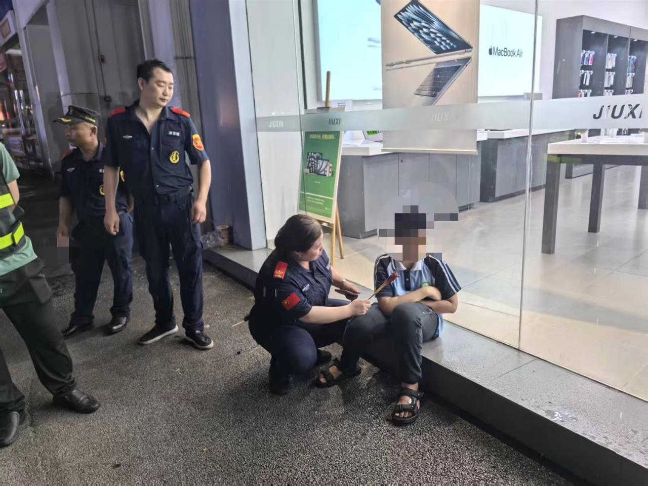 警方和救援队在街头找到出走男童王某某(受访者供图)