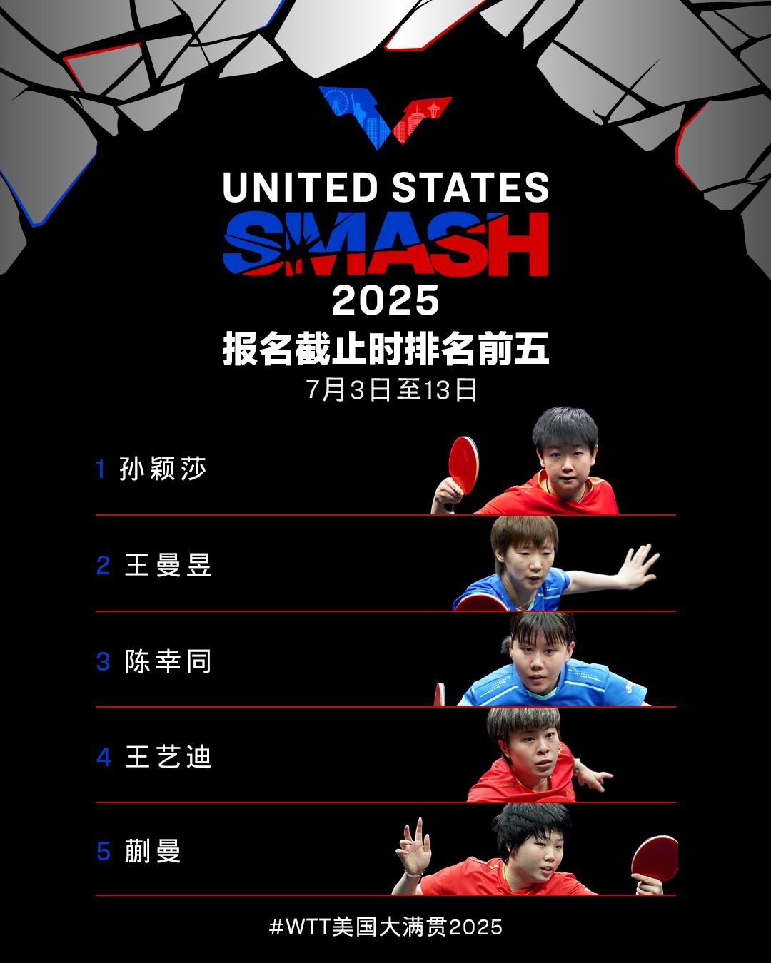 WTT美国大满贯2025将于7月3日至13日,在拉斯维加斯奥尔良体育馆及美高梅大酒店会议中心举行。届时,全球顶尖运动员将齐聚八极场,共同争夺2000点的世界排名积分。中国男单选手林诗栋、王楚钦、梁靖崑,女单选手孙颖莎、王曼昱、陈幸同、王艺迪、蒯曼等将出战。