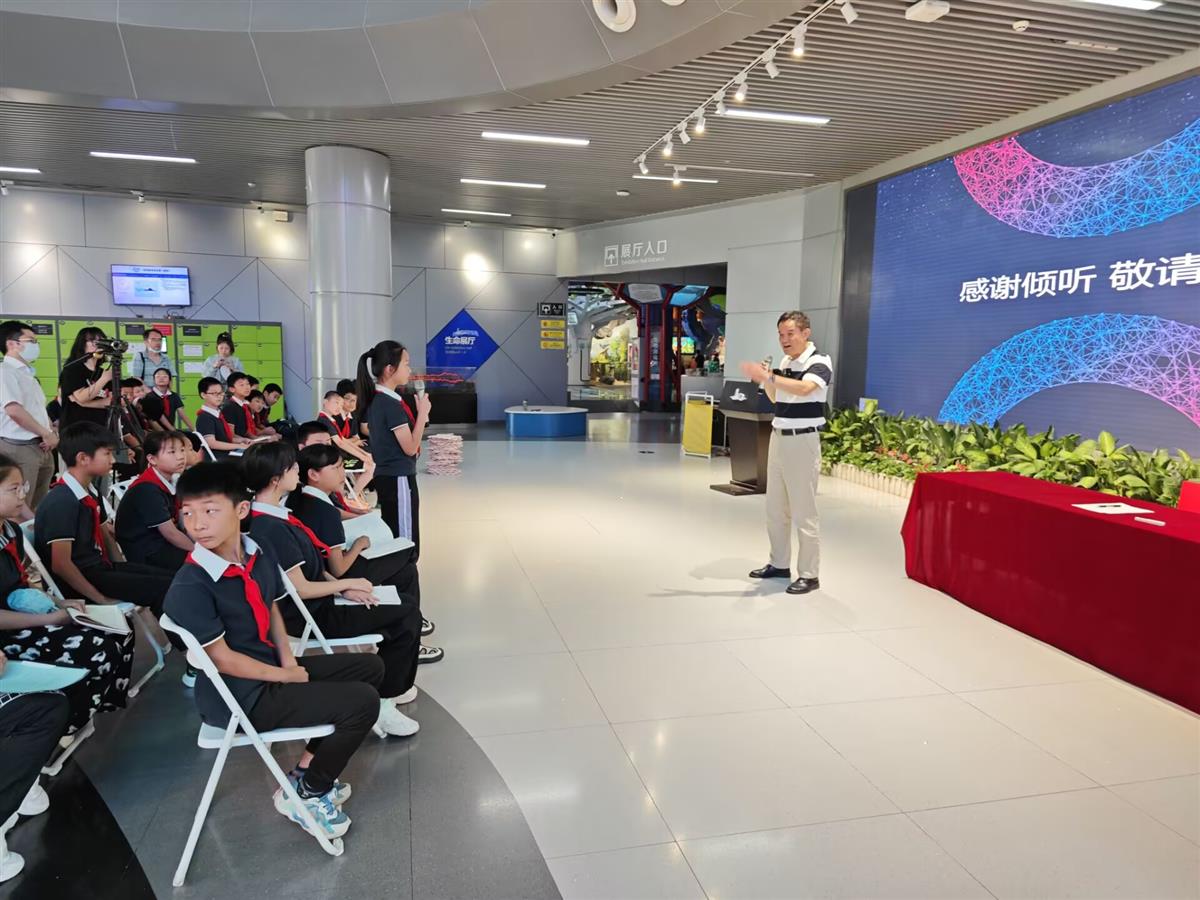 在有趣的互动问答环节,现场观众积极参与,“黄旭华院士在深潜实验中遇到了哪些困难”“黄旭华院士是怎么对科学产生浓厚兴趣的”“怎么才能成为像黄旭华院士这样的人”,王艳明教授一一为观众解答疑惑,幸运观众还获得了王艳明教授亲笔签名的科普书籍。来自馆校合作学校武汉经济开发区三角湖小学的师生代表对此次活动进行了现场观摩。